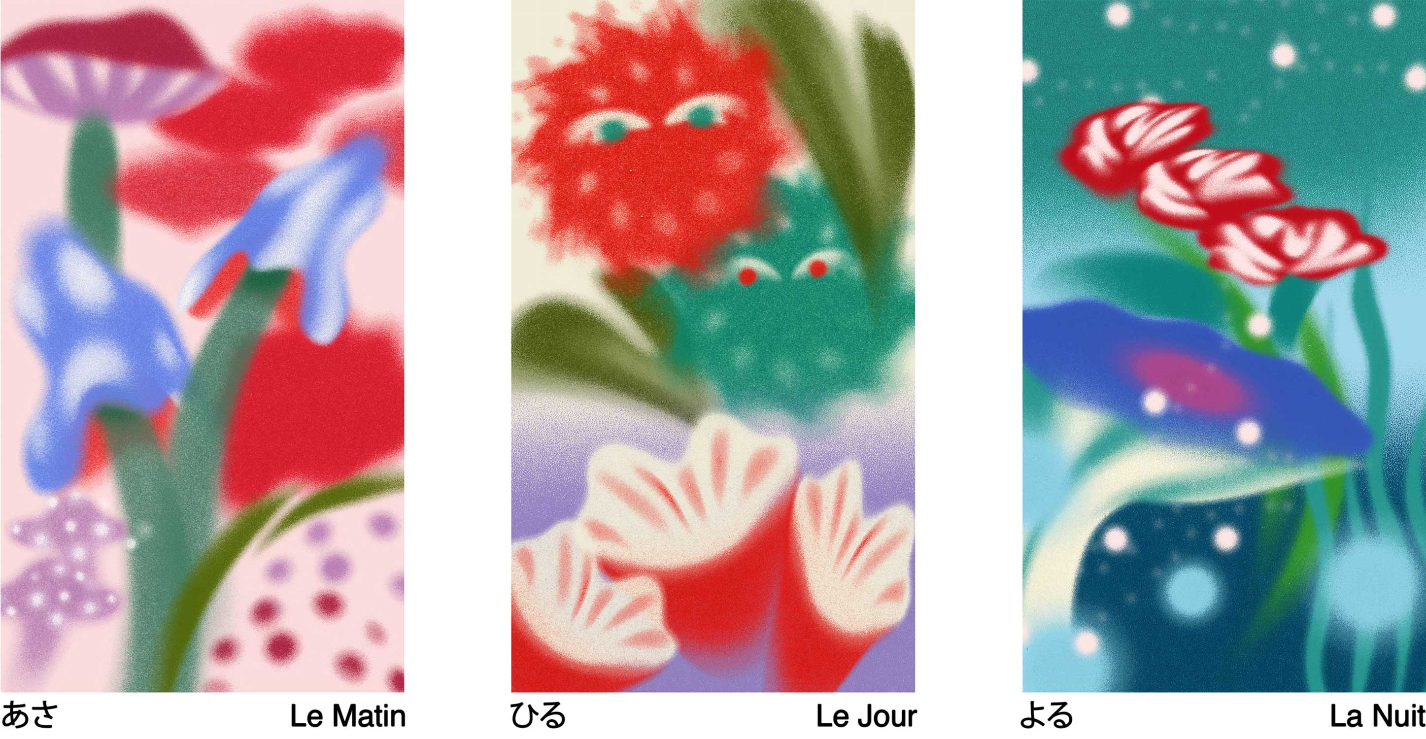 With Manon Cezaro, we developed during a late summer residency between Himi and Nanto a project exploring the dialogue between sea and mountain, domestic and collective space. In Himi, we drew from the local maritime iconography — fish and crabs from Fujiko Fujio A’s universe — to reflect on how popular imagery merges with everyday gestures and seasonal rhythms.